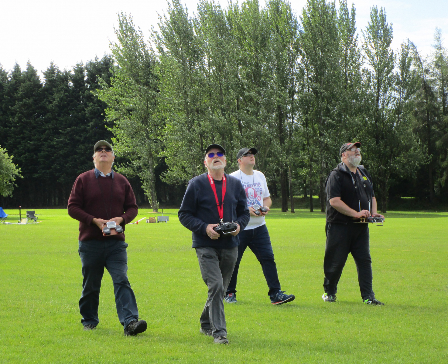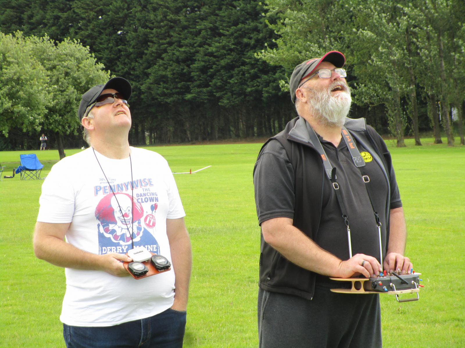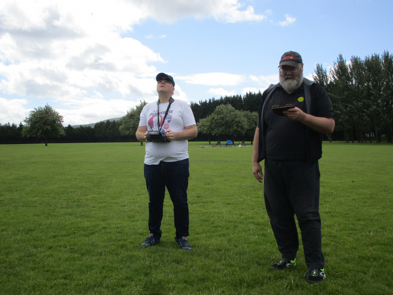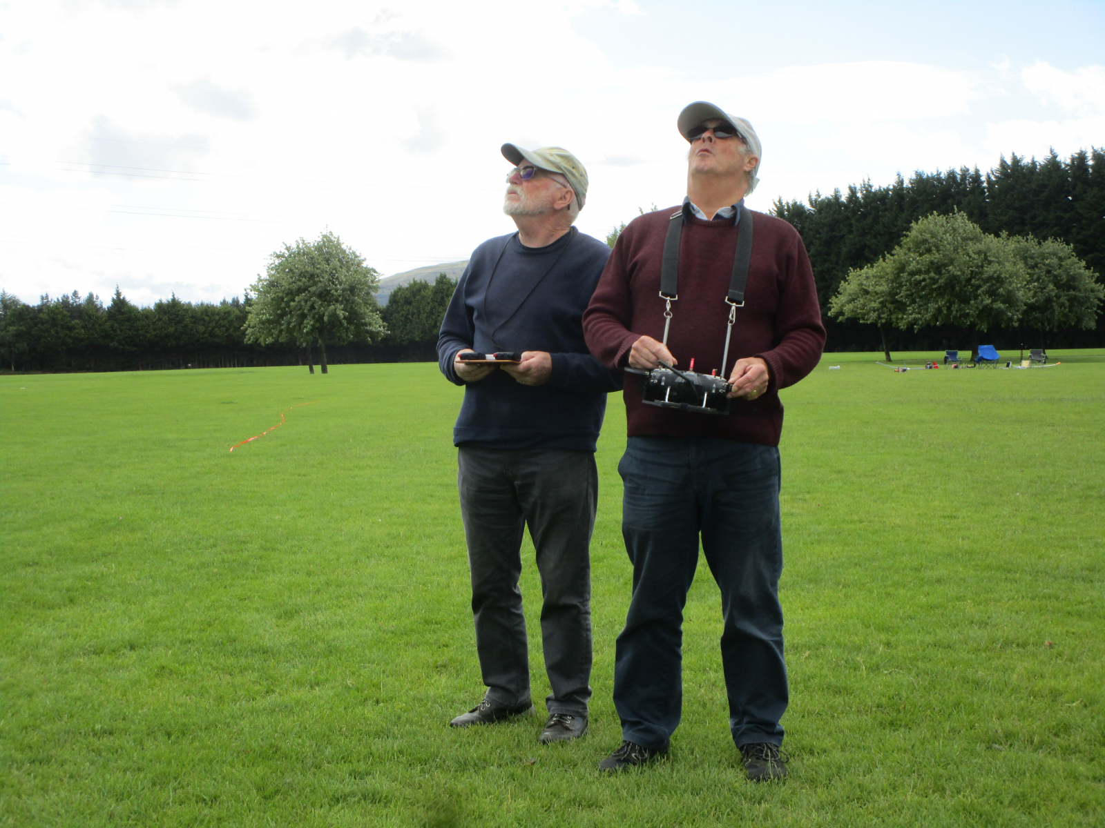 A warm day with a steady NNW breeze in high single figures, but gusting up to mid teens. 6 pilots turned out to fly, but Brians TX decided to stop working (possibly a dodgy SD card) and he was unable to fly leaving 5. CD Paul Freeman set the task as 5 rounds of 8 mins, 20 point bonus for the landing spot and one discard. Followed by a 2 man 2 round fly off.