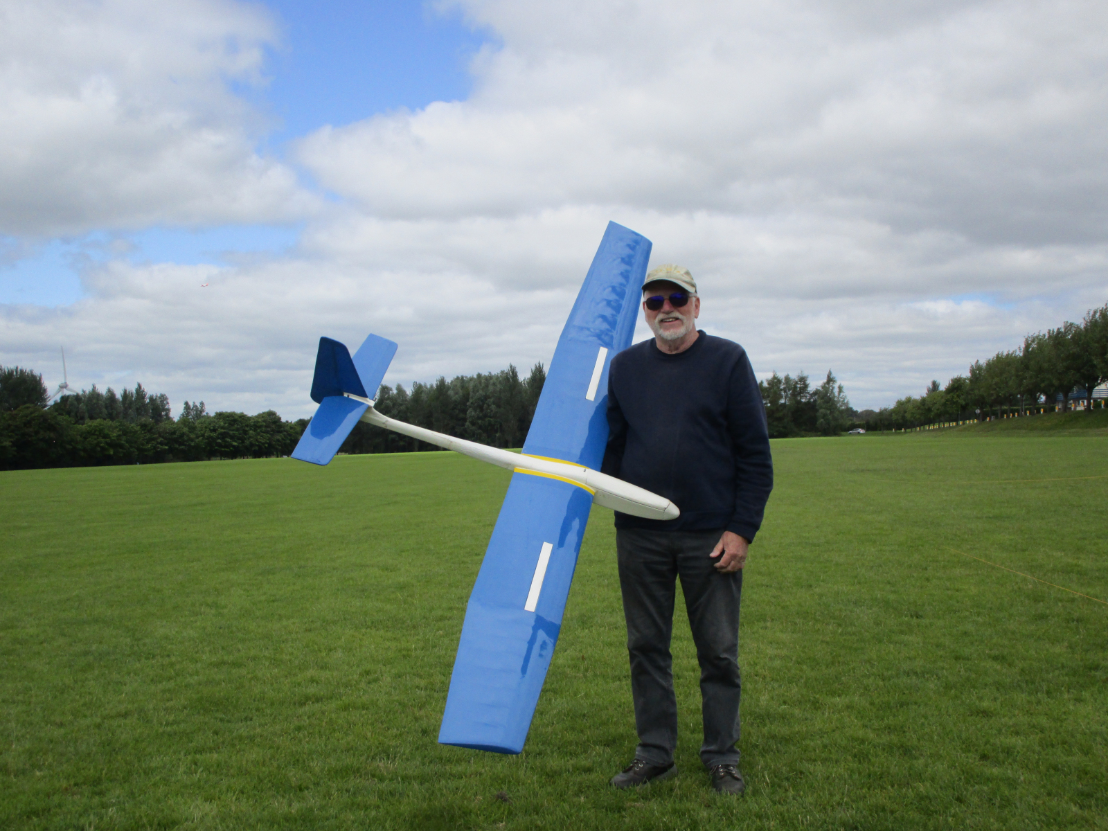 Conditions were very variable with some getting lift and others not. Once below about 30 metres, most were taking the decision to head for the spot as the low level turbulence was fierce. Chairman Bill Scott was again causing some consternation by having 2 good flights in his first 3. His heavy Algebra suiting the conditions and scooting around the sky to find and stay in the lift. Questions were asked as to whether he could actually see the model as on occasion it was very high and moving around a lot. Unfortunately a poor launch in Rd4 and a subsequent stall on a downwind turn spiked the model rather hard, breaking the closed loop rudder linkages, but otherwise causing no damage, but he was out of the event.