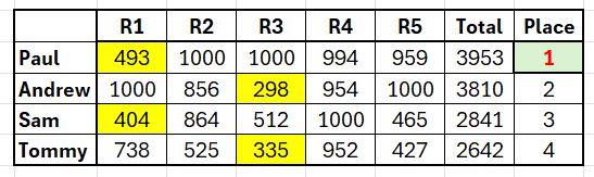 First competition of the season and the weather was great, light winds, blue skies and cumulus clouds. The clouds indicated marvellous lift which we found in abundance. Of course, what goes up must come down so there was plenty of sink in attendance too. Andrew was back flying and showed that he was just as sharp as ever by easily winning the first round. Round 2 was full of sink with very average flight times making the spot landing bonus important. Thereafter some flyers found lift taking the models to speck height with ease while others struggled through sink, everybody got their fair share of that. We flew five rounds with one discard and the morning passed by quickly. At the end Paul ran out as winner by a narrow margin just ahead of Andrew. It was a very