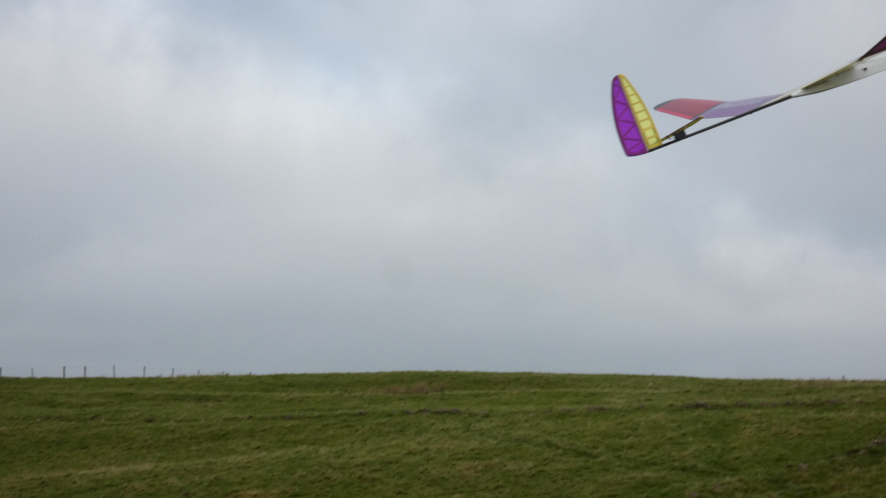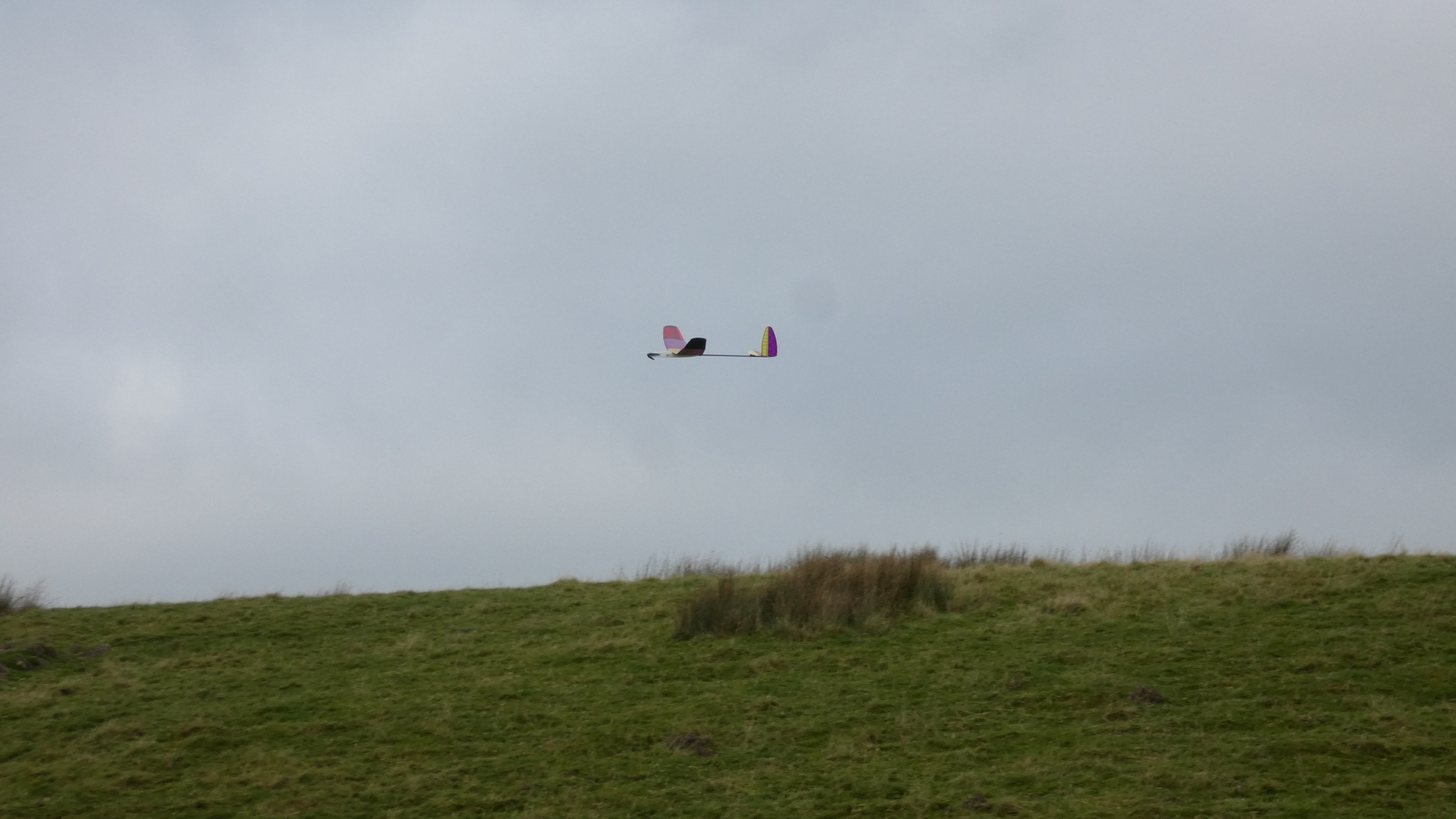 Bill had new plane, an ePurito but it initially refused to play which gave everyone a great opportunity to offer advice and assistance. Simple fix as the band for closing the blades was chokiing the motor shaft! Soon it was ready to go and the first flyers went off to find no lift at all.