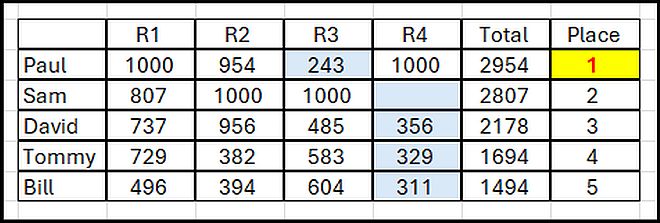 The third round had excellent lift at the beginning but this died at the end of the round leaving the last flyer with the worst score of the day.