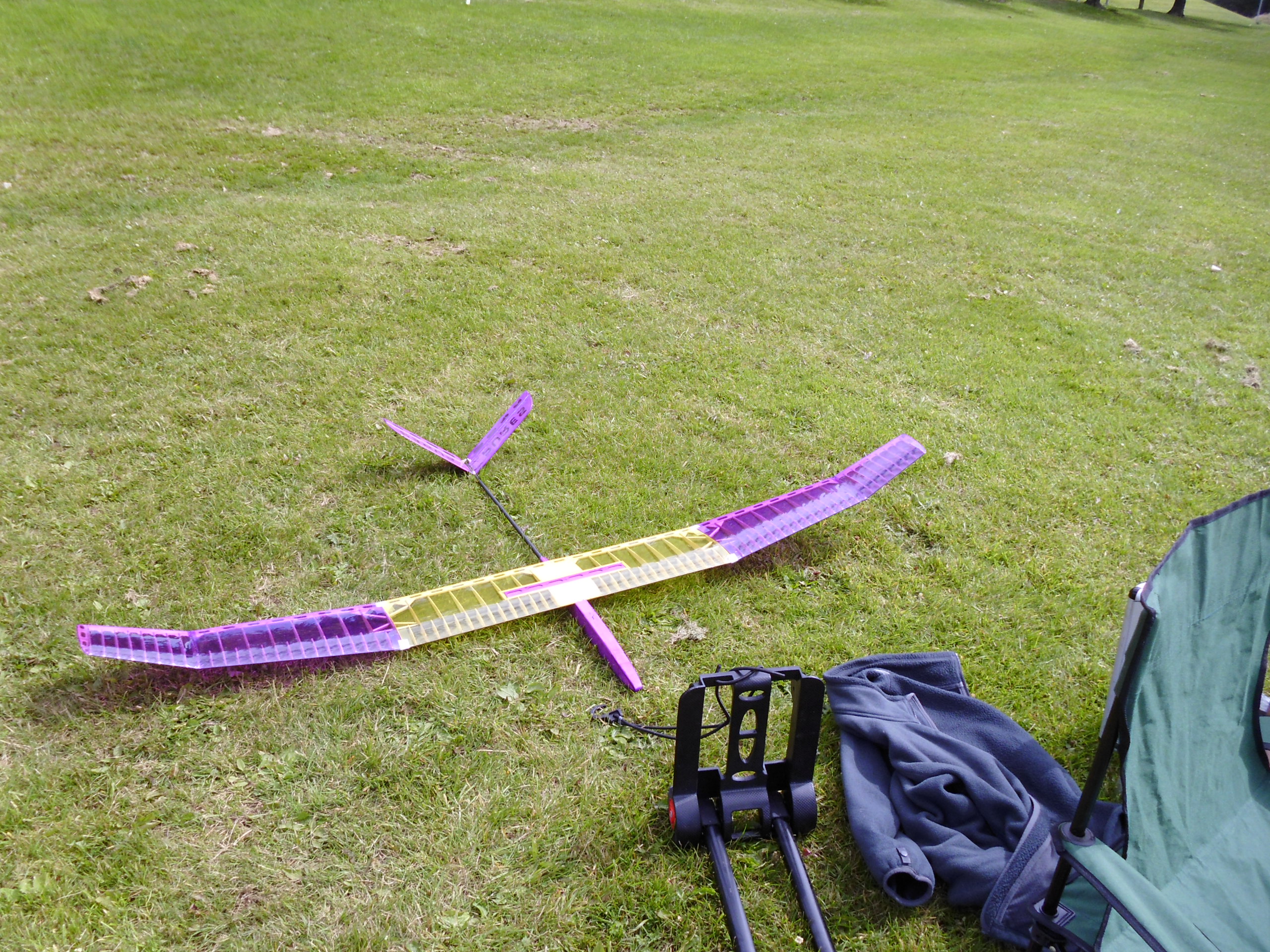 It was a nice morning, but the wind was a little stronger (and in a different direction) to the forecast! The bungees were set out and the first 2 pilots (Tommy & Tim), stepped up to take their flights. To say these were interesting would be a vast understatement! Low level turbulence was horrendous and a discussion ensued between all the pilots/CD as to whether we should continue or not! The wind dropped a little and we acrried on, although it was still turbulent. Some people got away (a bit) others didn’t! There was a marked difference in launch heights despite 2 identical bungees and all models being PuRES 2m. There was much discussion in the pits area over CG, hook positions and any other factors to affect launching. (We’re still working on it!)